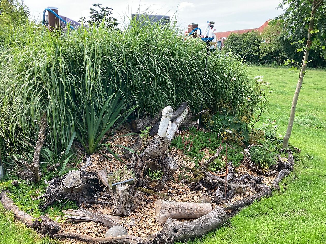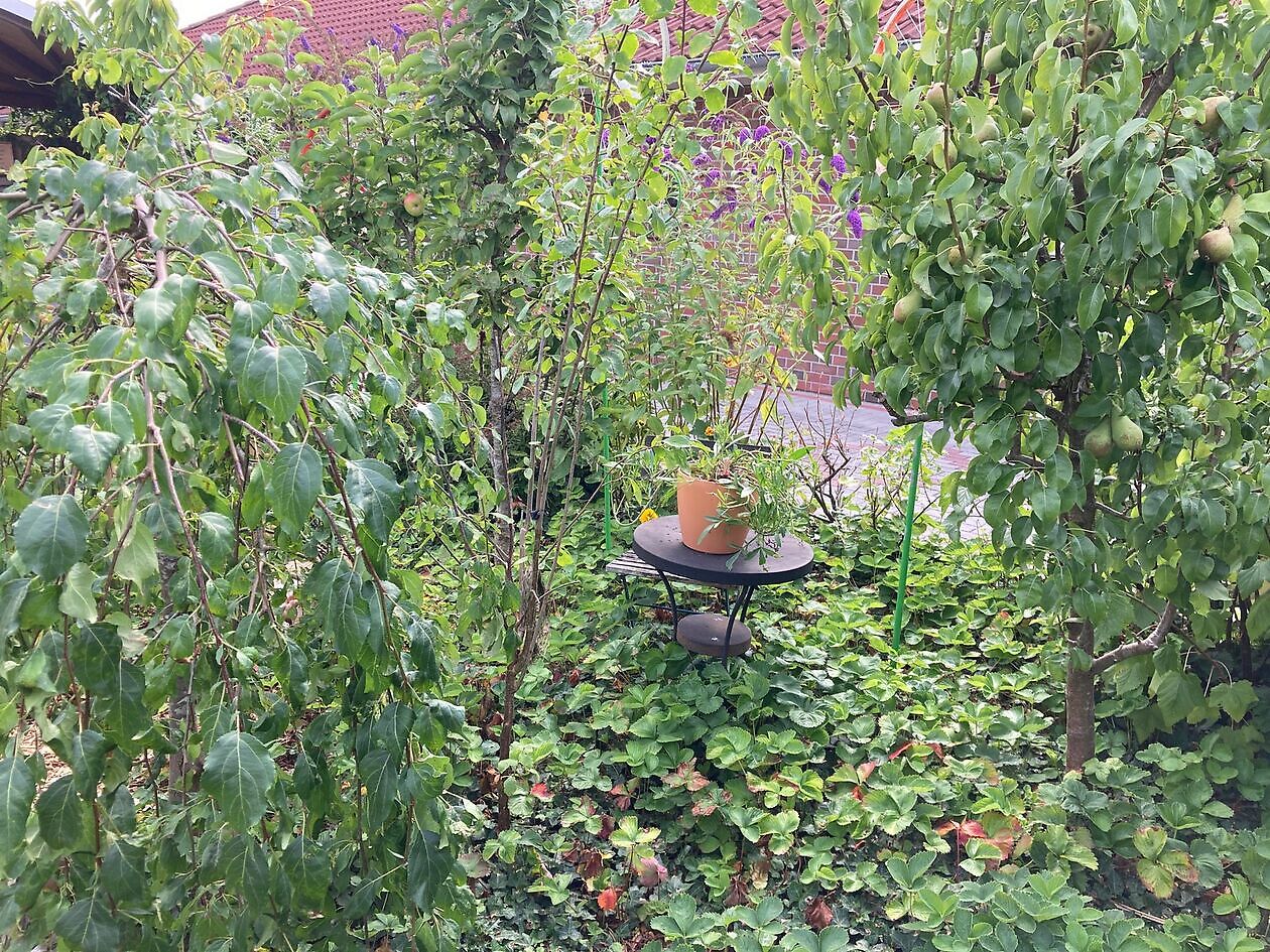 Mitten im Ortskern, angrenzend an weites Weideland, liegt die „Sander Butenstuv“ – ein junger, lebendiger Dorfgarten, der Vielfalt, Natürlichkeit und Struktur harmonisch vereint.