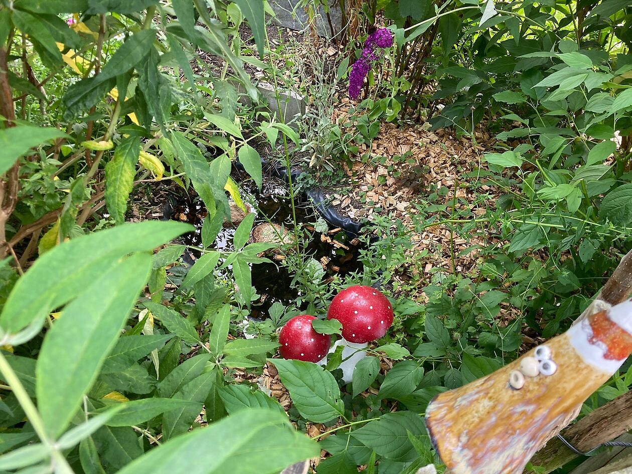 Der Garten überrascht mit thematisch gegliederten Bereichen und liebevoll gestalteten Genießer-Ecken, die zum Verweilen und Entspannen einladen. Gepflegte Elemente wechseln sich mit wilden, naturnahen Bereichen ab – ein spannender Kontrast, der die besondere Atmosphäre dieses Gartens ausmacht.